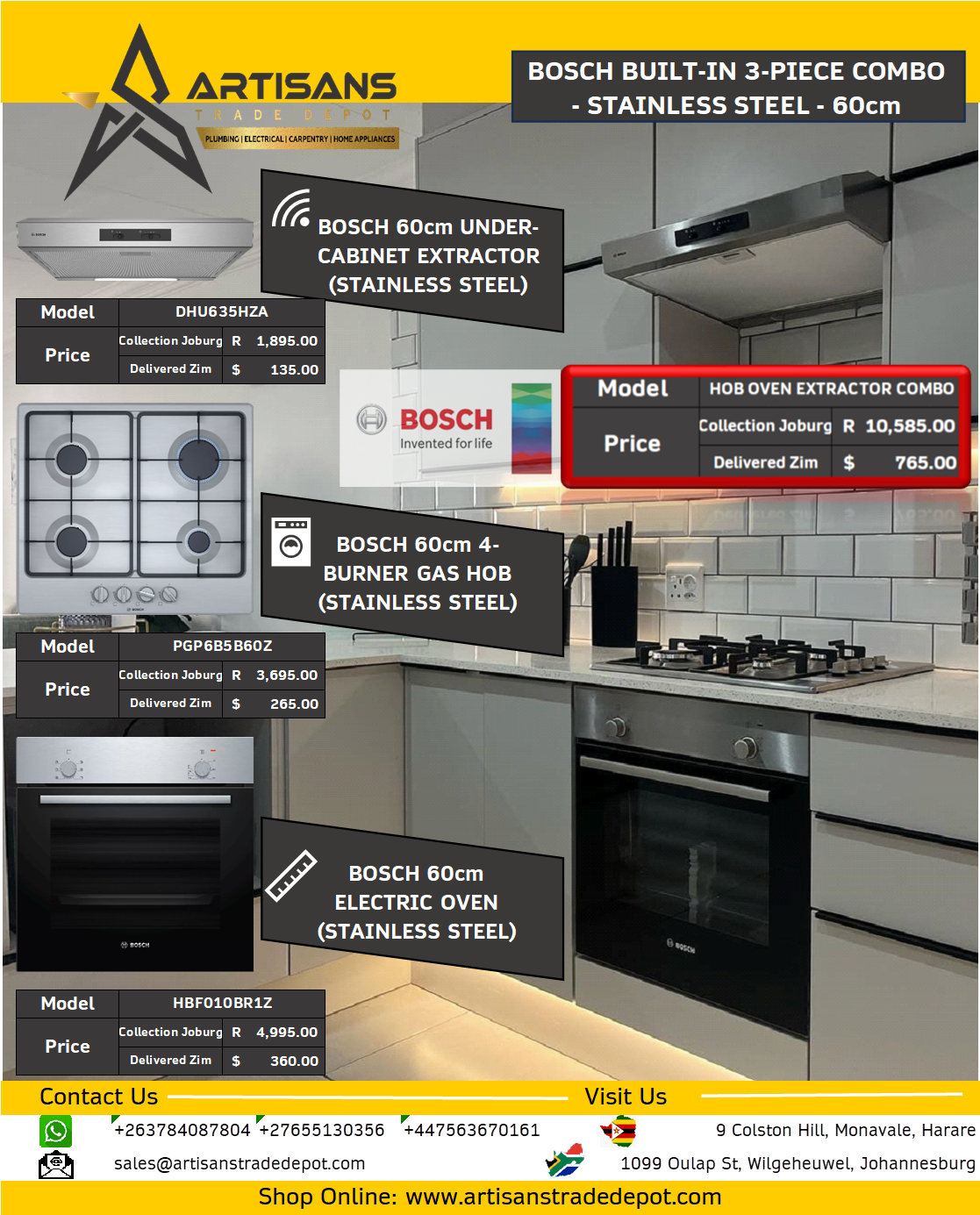 BOSCH 3-Piece 60cm Combo Set - Electric Oven, Gas Hob & Extractor