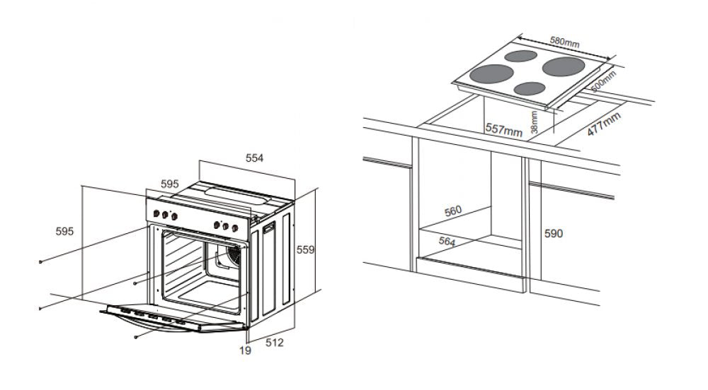 Gross Weight: 32.5kg (Oven) / 10kg (Hob)